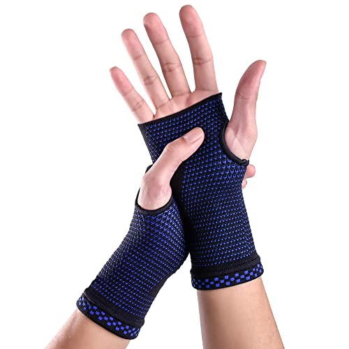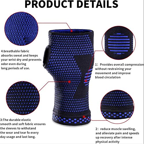 POKEAT 2Pcs Sport Polso Supporto Maniche Elastico Polso Compressione Brace Tunnel Carpale Ciclismo Pallacanestro Pallavolo Polso Sollievo dal Dolore,Blu,L