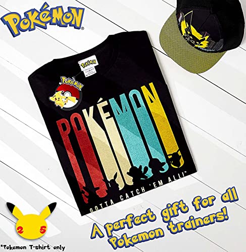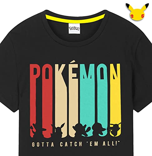 Pokemon Maglietta per Ragazzi Charmander, Eevee, Squirtle, Bulbasaur, Pikachu | T-Shirt Nero A Maniche Corta 100% Cotone con Motivo Pikachu | Maglietta Ufficiale (12-13 Anni)