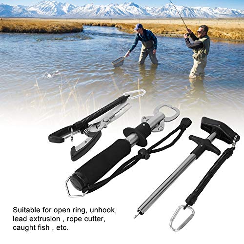 Questo prodotto include 1 pinza da pesca media + un grande dispositivo di rimozione dell'amo da pesca + pinza da pesca, adatta per anello aperto, sganciamento, estrusione di piombo, tagliafune, pesce pescato, ecc.