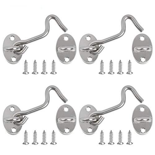 POKIENE Gancio per Cabina 4 Pezzi, Chiusura Gancio per Porta in Acciaio Inox, Chiusura a Occhiello per Serrature Supporto Porta Finestra, con 16 Viti per Il Montaggio da -3 Pollici
