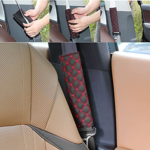 POKIENE 4 Pezzi Copri Cintura Auto, Protezione per Cintura di Sicurezza 25 Cm * 6 Cm Cuscino per Cintura Auto, Tracolla, Protezione per Spalla, per Adulti e Bambini - Nero Rosso e Nero Bianco