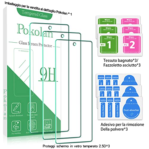 Pokolan 3 Pezzi Vetro Temperato pour Google Pixel 7 Pellicola Protettiva, Durezza 9H, HD Chiaro, Senza Bolle, Anti Graffio, Installazione Facile