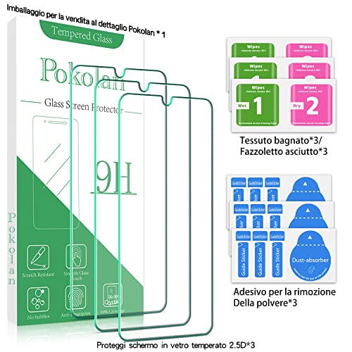 Pokolan [3 Pezzi] Vetro temperato per Huawei P Smart 2019, Honor 10 Lite, Honor 8A, Pellicola Protettiva Anti Graffio, Anti-Impronte, Senza Bolle, Durezza 9H, Ultra HD, Facile da Installare