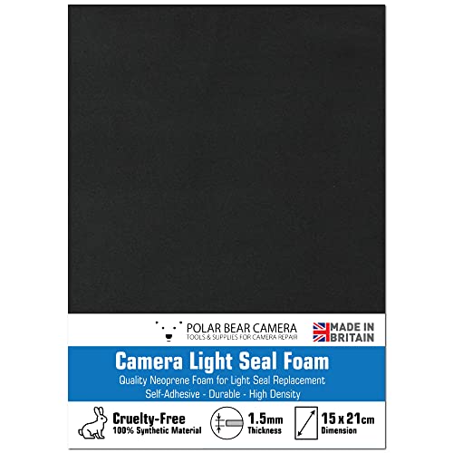 Polar Bear Camera Guarnizione per luce per fotocamera, in schiuma, sottile, 1,5 mm, colore nero, autoadesivo, per il restauro della fotocamera (15 cm x 21 cm)
