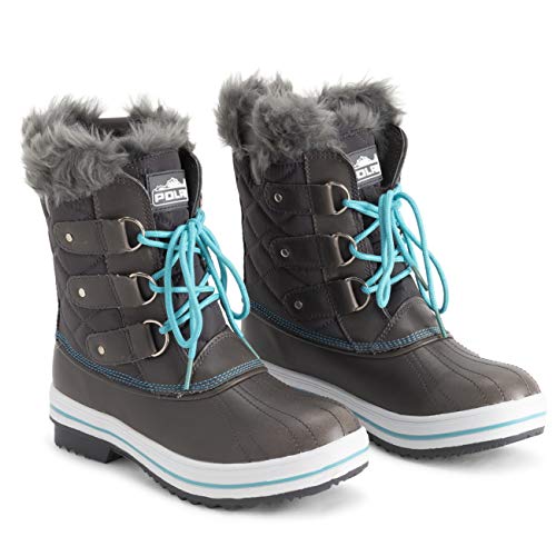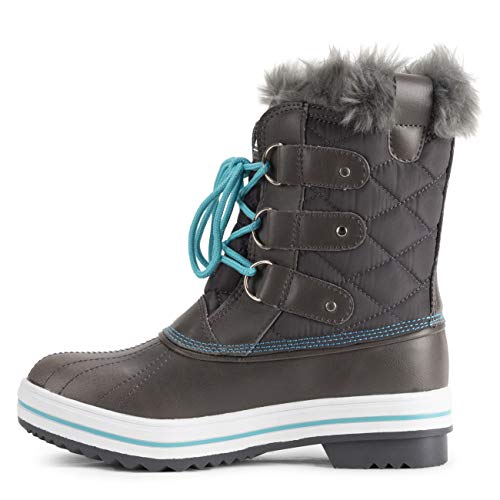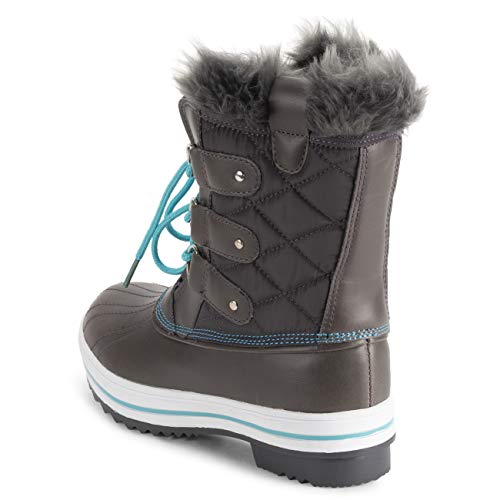 Polar Donna Mid Imbottito Termica Durevole Suola Di Gomma Impermeabile Inverno Neve Pelliccia Ecologica Stivales - Grigio/Blu - UK9/EU42 - YC0638