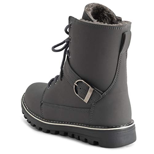 Polar Donna Memory Foam Biker Neve Stivales Pelliccia Ecologica Foderato Ripiegato Gomma Suola Termica Scarpe - Grigio - UK8/EU41 - YC0646