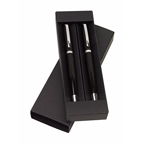 Polar-effekt, Alphabet, set di scrittura formato da penna a sfera e penna rollerball di colore nero, con inchiostro nero, con incisione personalizzabile, in astuccio regalo