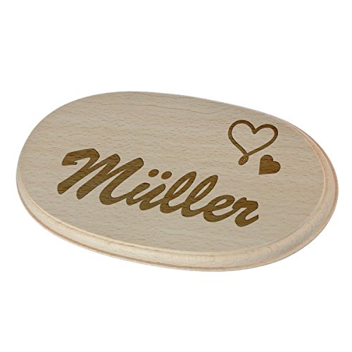 Polar-effekt Targa in Legno per Porta con Incisione - Regalo per Ingresso - con Scritta 17,7 x 9,9 cm - Motivo Cuori con Nome
