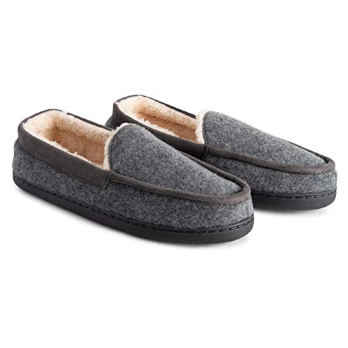 Polar Uomo Memory Foam Doppia Dimensions Moccasin Loafer All'Aperto Durevole Suola Di Gomma Pelliccia Ecologica Felpa Casa Pantofole - Buio Grigio Provato - UK6-7/EU40-41 - EA0630