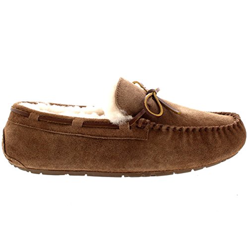 Polar Uomo Mocassino Vera Pelle Di Pecora Australiana Genuino Foderato Di Pelliccia Mocassino Pantofola - Tan - UK8/EU42 - YC0449