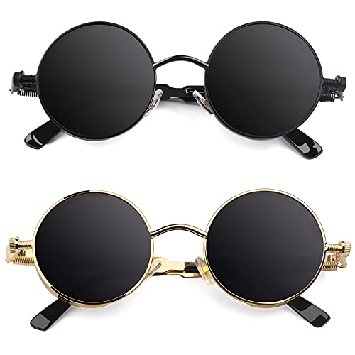 CGID E72 Polarizzate Occhiali da Sole da Uomo Retro Stile Steampunk Rotondi in Metallo,2 pezzi