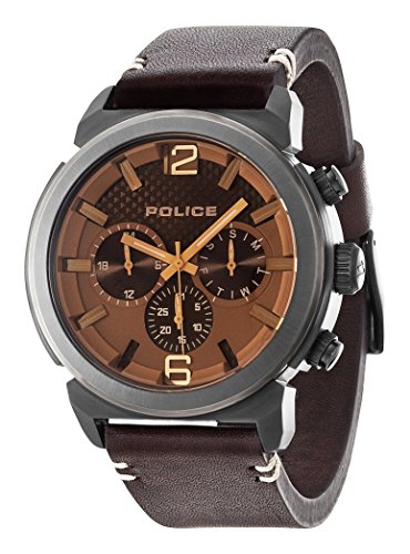 Police, Burbank - Orologio Analogico da Polso, Uomo, Cinturino in Pelle, Marrone