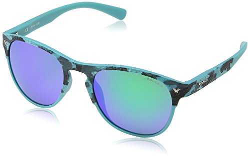 Police - Occhiali da sole S1949 Game 1 Rotondi, SEMI MATT TURQUOISE CAMOUFLAGE FRAME/GREEN MIRROR LENS