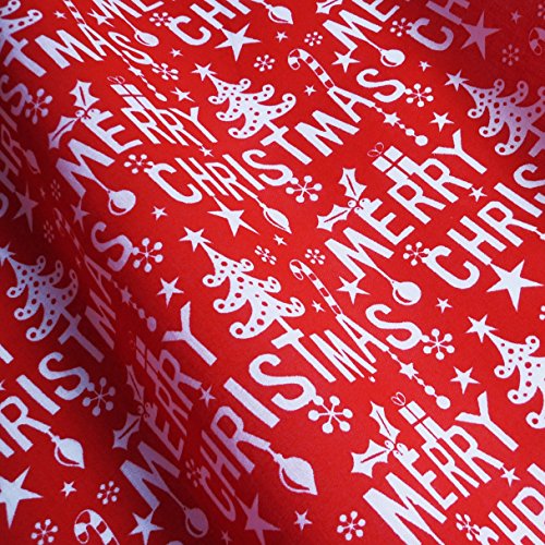Red policotone Fabric with Merry Christmas Print (per metre)