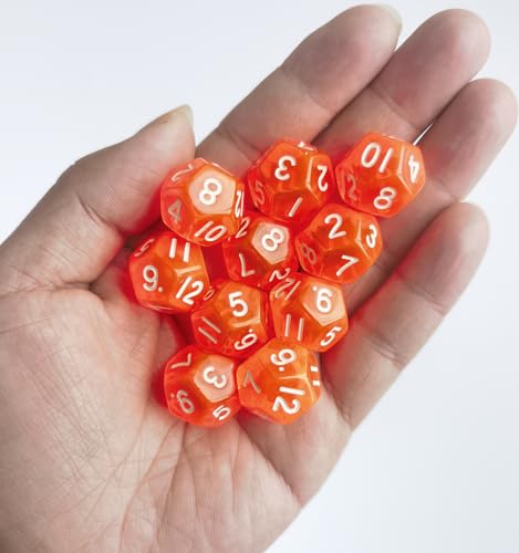 Dadi Poliedrici,10 pcs D12 Dadi per DND MTG Rpg Dungeons And Dragons 20mm Arancione Trasparente