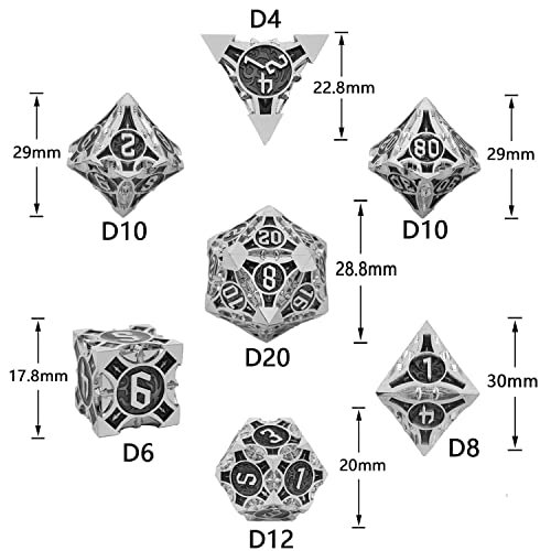 Bordi affilati - I dadi poliedrici sono accuratamente rifiniti a mano, levigati e polilettici. rifinito, con spigoli vivi e bordi delicati e motivi unici che gli conferiscono grande carattere. Materiali di alta qualità: i dadi da gioco sono fusi a mano in metallo per robustezza e stenza all'usura, con un peso medio e una buona sensazione di rotolamento