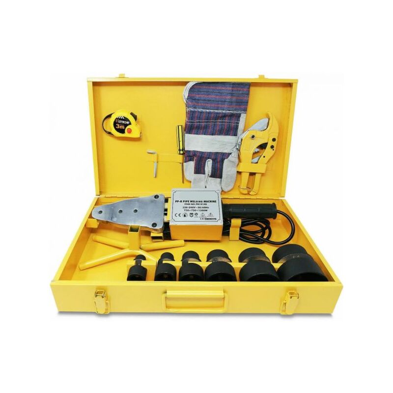 POLIFUSORE SALDATORE 1500W 6 MATRICI PER SALDATURA TUBI PLASTICA PVC PVDF Kit Polifusore per saldatura di tubi polipropilene (PVC,PP-R,PE) per impianti idraulici e termici.All'interno della comoda valigetta in metallo sono compresi, oltre al polifusore sono incluse 6 matrici, un supporto per appoggiare il polifusore più altri accessori, inoltre è dotato di un termostato per la regolazione della temperatura da 0 a 300° con una potenza di 1500W. Il prodotto sviluppa 750W+750W con la possibilità di scegliere se accendere una o entrambe le resistenze per un totale di 1500W. Caratteristiche tecniche: 6 matrici del diametro: 20, 25, 32, 40, 50, 63 mm. Alimentazione: 220V ~ 50Hz Potenza: 1500W Temperatura della superficie della matrice: 0°C a 300°C La confezione contiene: 1 Polifusore da 1500W 6 Matrici 1 Forbice a cricchetto 1 Supporto poggia polifusore 1 Metro avvolgibile da 3Mt 1 Coppia guanti