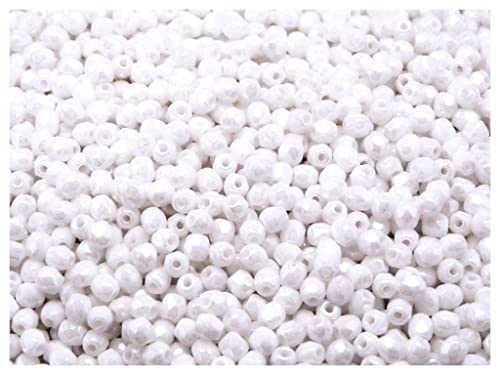 Fire Polished Beads, Tonde 3mm, 100 Pezzi, Perline di Vetro Sfaccettate Ceche, Lucidate a Fuoco, Chalk White/White Luster