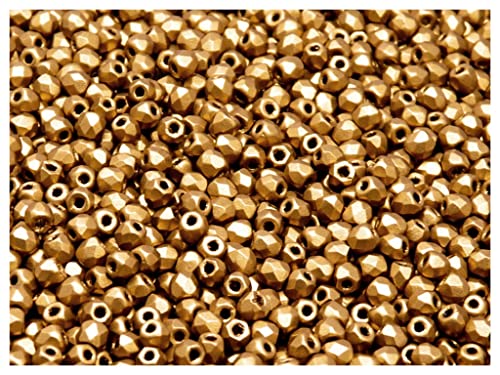 Fire Polished Beads, Tonde 3mm, 100 Pezzi, Perline di Vetro Sfaccettate Ceche, Lucidate a Fuoco, Crystal/Bronze Gold (Golden Matte)