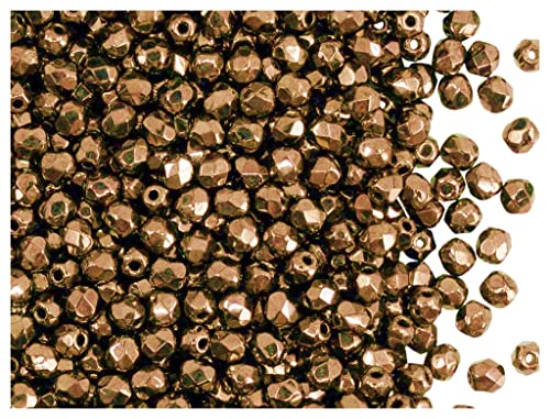 Fire Polished Beads, Tonde 3mm, 100 Pezzi, Perline di Vetro Sfaccettate Ceche, Lucidate a Fuoco, Jet Black/Gold Bronze (Dark Gold Metallic)