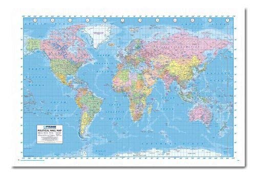 Politica Mappa Del Mondo Bacheca Con cornice in Bianco Legno Include Pins - 96.5 x 66 cms (circa 96,5 x 66 cm)