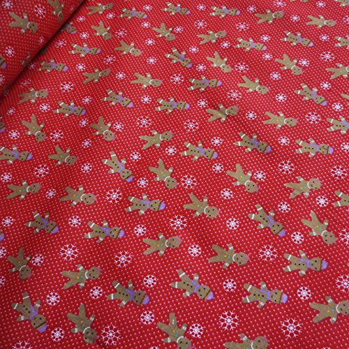 Red Polka Dot Polycotton Fabric with Gingerbread Snowflake Print (Per Metre) by Nortex Mill