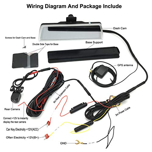 【Triplo ampio retrovisore grazie alla tecnologia video streaming】 con questa tecnologia avanzata di streaming multimediale. Con la fotocamera posteriore AHD (1280 x 720p), rende la visione posteriore di guida più ampia, è tripla visione ampia se confrontata con lo specchio tradizionale.