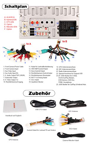 【Funzioni Multipul】 ✔ Ultimo Bluetooth 5.0 - Chiamate in vivavoce, musica BT, sincronizzazione della rubrica, visualizzazione delle chiamate recenti. ✔ Sintonizzatore radio (FM/AM) con RDS. ✔ Lettore multimediale, può riprodurre musica/video (1080P)/foto da USB/SD. ✔ Pannello colori chiari/sfondo/logo stivale/lingua regolabile. ✔ Supporta DAB +, TPMS, OBD2, DVR, telecamera di retromarcia, uscita video, ecc., Hanno bisogno di elementi opzionali con cui lavorare.