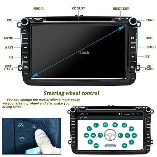 8 Pollici Autoradio 2 Din Android 10 GPS per VW Golf MK5 MK6 Passat Skoda Polo T5 con Touch Screen CD DVD Navigazione GPS Bluetooth AM PM WIFI SWC DSP DAB+, 2+16GB