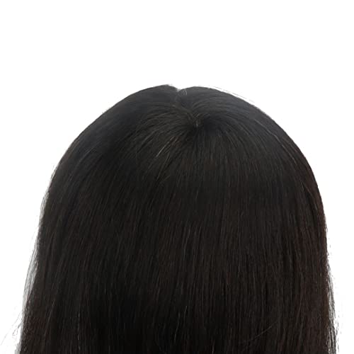 18 pollici 100% capelli umani, marrone e nero, due colori di capelli. Modello di testa sportiva per barbiere con acconciatura lunga (Capelli neri)