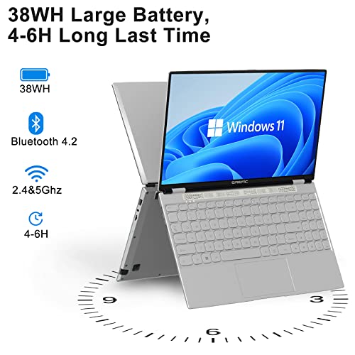 【Alte prestazioni Windows 11】Laptop Questo è preinstallato con il sistema operativo Windows 11. Adotta il processore Intel Celeron N5105, 4 core e 4 thread, frequenza principale 2.0GHZ, frequenza turbo 2.9GHz. L'ultima generazione di Intel UHD Graphics 600, con una frequenza massima di 800 MHz, eccellenti capacità di elaborazione grafica e un funzionamento fluido della decodifica hardware video 4K.