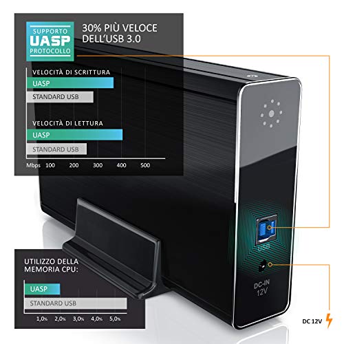 CSL - Case per Hard Disk 3.5 pollici Esterno USB 3.0 - Custodia in Alluminio- per SSD e HDD - SATA - UASP - Super Speed 5 Gbit s - Plug e Play - Hot-Plug - con Alimentatore Incluso - Nero - OFFERTA