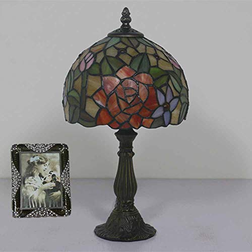 8 Pollici Lampada da tavolo Stile Tiffany, Paralumi in Vetro Colorato Pastorale floreale Lampada da comodino Base in Resina per Camera da Letto Soggiorno Sala Studio,F