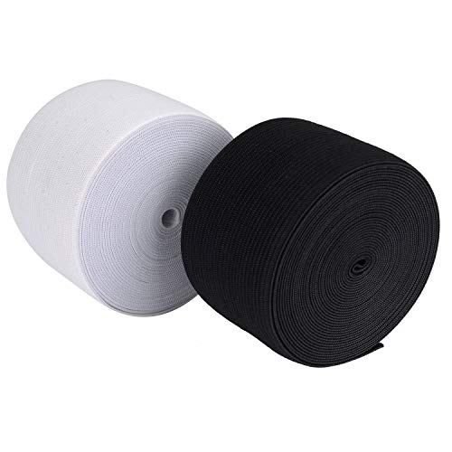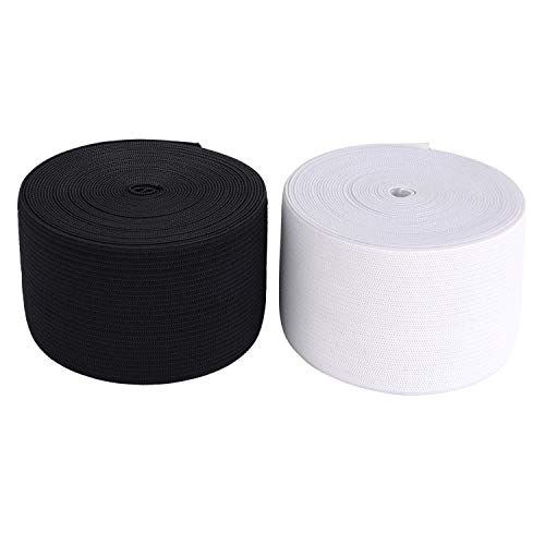 2 Pollici Rocchetto di Fasce Elastici Piatti Larghe Fasce da Cucire Piatto Banda Cordino Elastico, 5.5 Iarde, Bianco e Nero, 2 Pezzi