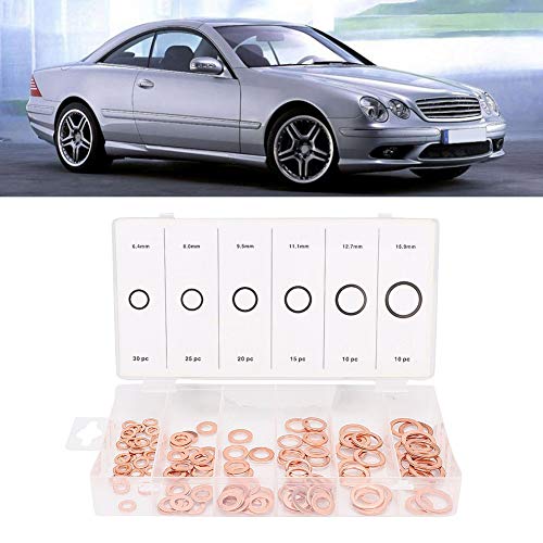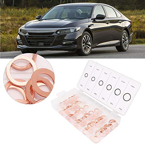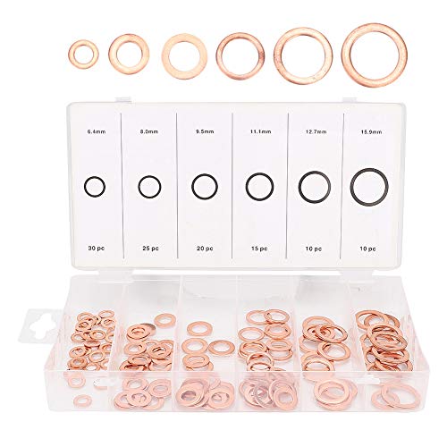 0,25 pollici di rondella di rame-Duokon 110 pezzi Rondella in rame di dimensioni miste Assortimento Anello piatto Guarnizione linea freno olio