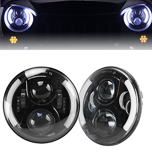 SXMA 7 '' Pollici 50W Rotonda LED Light Control con Ambra Segnale di girata DRL Halo per Jeep Wrangler JK TJ Hummer H1 e H2 (1 Coppia) HL222