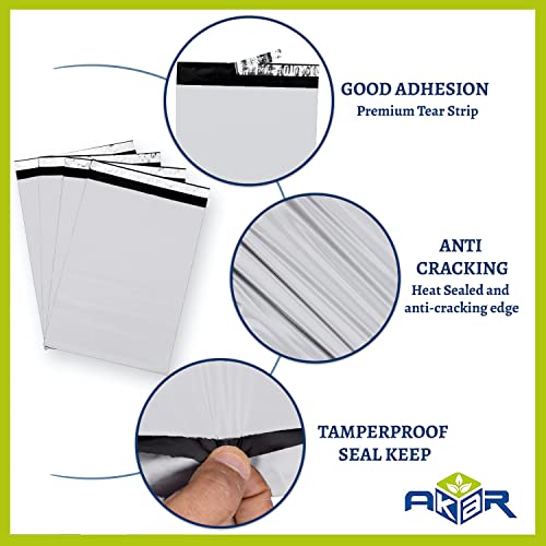 AKAR 47 x 52 pollici sacchetti per posta - forte polietilene con striscia adesiva in alluminio - 60 micron - facile tenuta - XL 43 x 56 cm - per articoli non fragili (bianco, 5 pezzi)