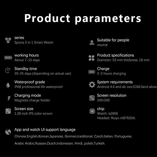 YXHS 1.3 pollici IPS schermo a colori Smart Watch, Android 4.4 Smartwatch con Bluetooth auricolare, IP68 impermeabile, risoluzione dello schermo 240 * 240, Bluetooth 5.2
