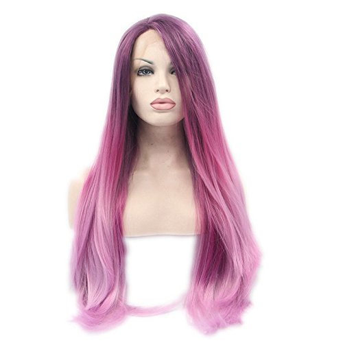24 pollici rosa scuro a rosa ombre naturale dritto sintetico pizzo frontale parrucche 180% densità resistente al calore capelli fibra per donna