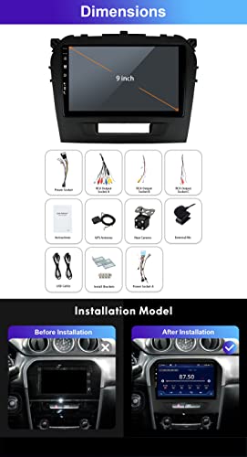 9 pollici IPS Touch Screen GPS 2 DIN Autoradio Android 12 Per Suzuki Vitara 2011-2020 - 4G + 64G- Supporto telecamera posteriore gratuita BT5.0/WLAN/SWC/DAB/DSP/Carplay