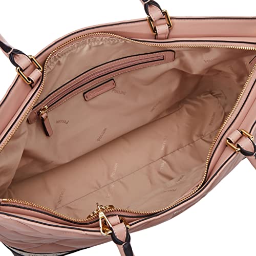 DECORAZIONI: la contaminazione Heritage dona un tocco di lusso e raffinatezza alla shopping bag, arricchita dal logo Pollini in galvanica oro chiaro applicato sul davanti e dal portachiavi amovibile con cuore logato.