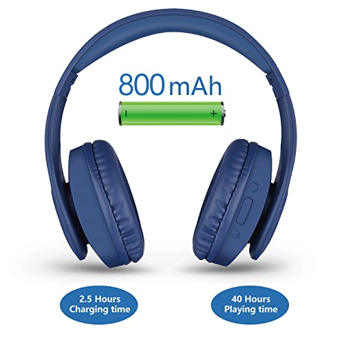 Pollini Cuffie Bluetooth senza fili, 40 ore di riproduzione, cuffie over-ear pieghevoli con microfono, headset stereo con bassi profondi e morbide cuffie memory-protein per cellulare/PC(blu)