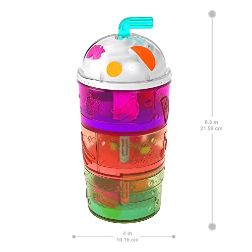 Il parco acquatico pieno di sorprese a forma di succo di frutta ha un coperchio che si apre e 3 livelli da girare per rivelare 3 piani di divertimento;