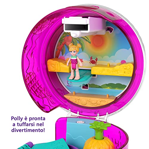 Polly Pocket- Playset Borsetta Twist Succo di Frutta a Tema Parco Acquatico, 3 Piani e 25 Accessori, Include Micro Bambola Polly e Lila, Giocattolo per Bambini 4+Anni, GYW08