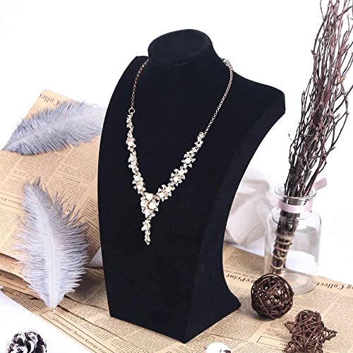 POLMART Espositore per gioielli con ritratto in velluto, 2 pezzi nero, espositore per gioielli, espositore per collana con busto di gioielli 3D--34H CM