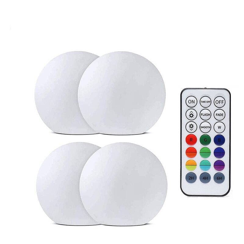 Lampadina per esterni - x 4 Utilizzo di queste lampadine esterne wireless a casa per colorare. Queste sfere luminescenti compatte aggiungono luce alla parete esterna: possono comportarsi come il nucleo di illuminazione, può essere sospeso sopra la terrazza o galleggiare sull'acqua della piscina.. Utilizzando il telecomando, è possibile scegliere Adapted alla propria modalità di illuminazione per controllare a distanza il loro illuminazione multicolore. Definisci il tuo umore, trascorri la tua notte in un'atmosfera morbida. Benvenuto fuori dal giardino e alleggerire il tuo giardino. Impostazioni del prodotto: 1. Attrezzatura: Olio + ABS Plastica 2. Colore: 16 Colore opzionale 3. Tensione (V): 6V 4. Power (W): 0,03- 0,1 W 5. Riflettente: RA≥80 6. Dimensione dell'unità: 3.1 pollici / 7,8 cm 7. Tipo di lampada: 5050 8. Numero di palle lampada: Lampada da 1 * 5050 RGB 9. Alimentazione: 2 Pulsante CR2032 Torna al pulsante 10. Distanza dal telecomando: 10-15 metri di 11. Dimensioni