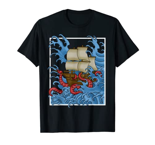 Maglietta polpo Maglietta mostro Kraken Maglietta nave pirata Sea Creature per donna e uomo.