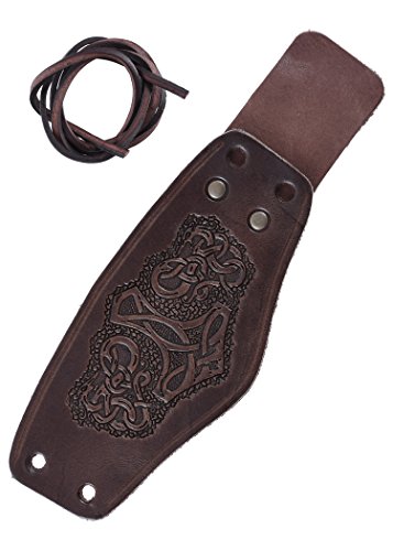 Polsiera in pelle, con martello di Thor, corta - bracciale, protezione per polso vichinga in stile medievale, marrone