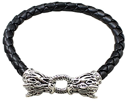 Polsini splendidamente all 'Bracciale in pelle con drago testa chiusura - adatto per un regalo, confezionati in un simpatico velluto Pouchette - Dimensioni da 7 a 22,9 cm, Nero, cod. BRA-SHAM-227-BL
