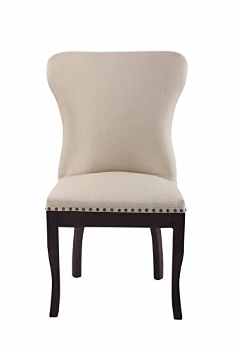CLP Poltrona Barocco Moderno Windsor In Tessuto I Poltroncina Trono Pranzo Alto Schienale E Telaio In Legno Di Caucciù, Colore:panna